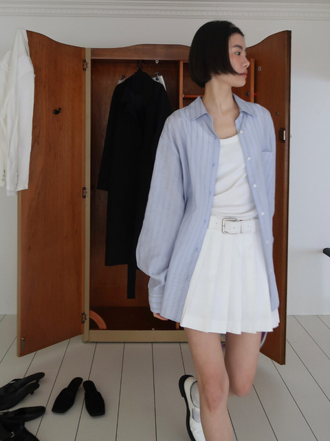 [티엔느] 지에 루즈핏 스트라이프셔츠_라이트블루