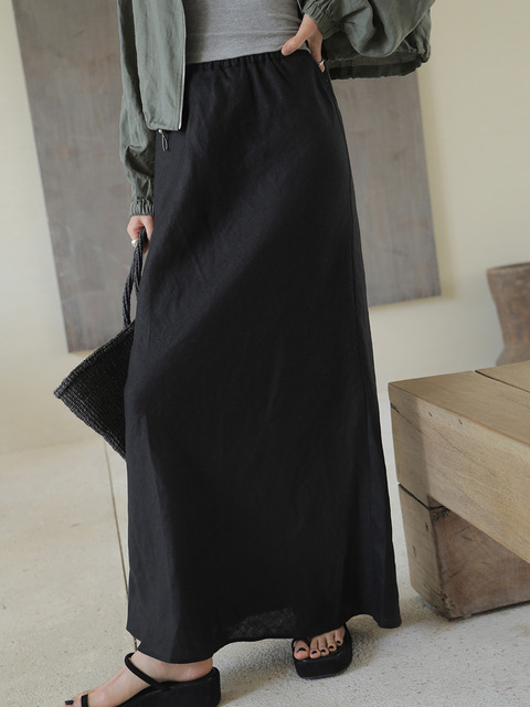 [티엔느] 린넨 헤라 롱스커트_블랙