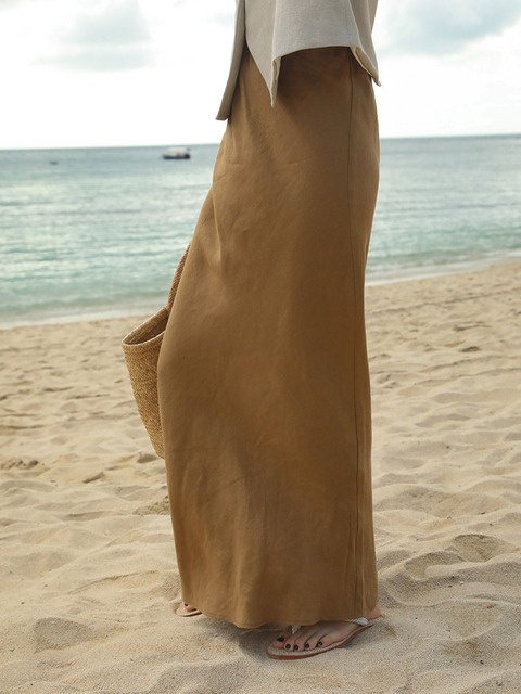 [티엔느] 린넨 헤라 롱스커트_브라운