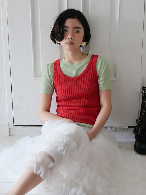 [티엔느] 마일즈 썸머 울 슬리브리스 니트_그레이