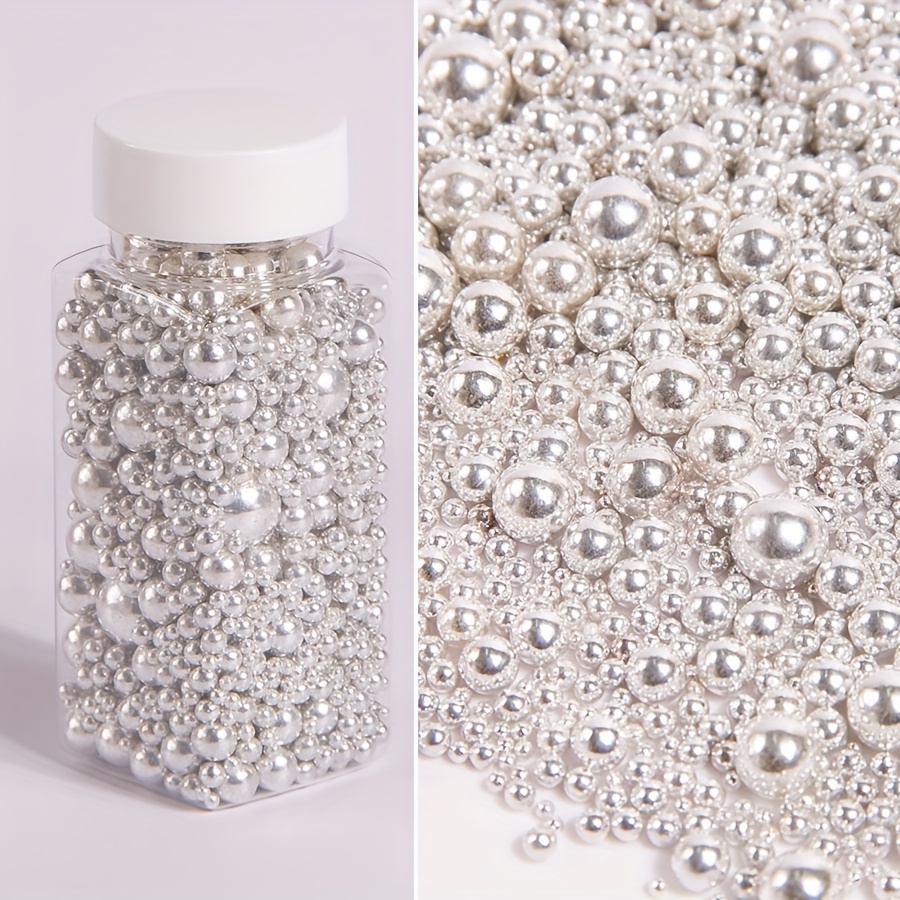 TEMU 95g/3. 골든 화이트 진주 케이크 장식 - 컵케이크, 쿠키, 도넛 & 아이스크림용 혼합 사이즈 - 결혼식, 생일, 발렌타인데이, 크리스마스에 완벽 - 식품 안전 플라스틱 베이킹 용품, 케이크 장식 용품