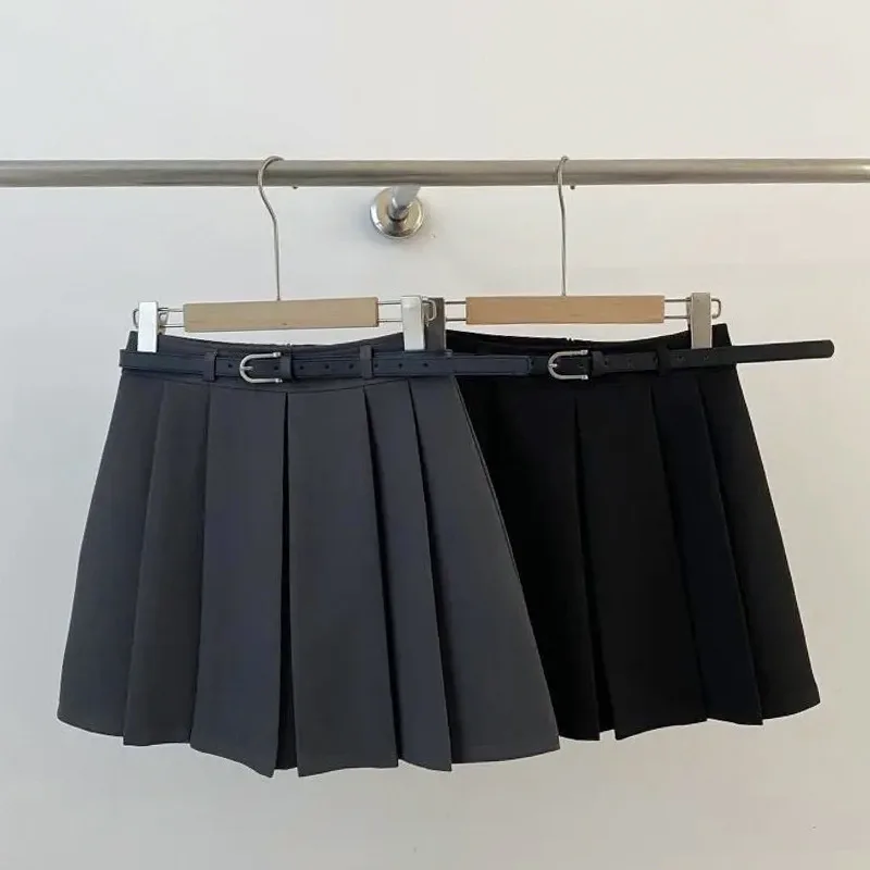 하이웨이스트 플리츠 미니스커트 벨트형 다용도 에이지리스 가을 2025 신상 대학 스타일 하프 길이 스커트 젊은 여성용