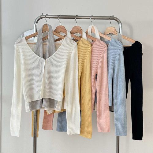 [기타브랜드]6컬러 브이넥 파스텔 골지 카디건