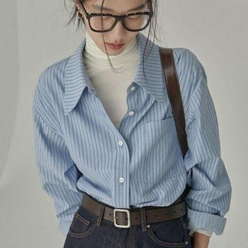 [에이치플러스몰]여성 긴팔 남방 오버핏 블라우스 파자마