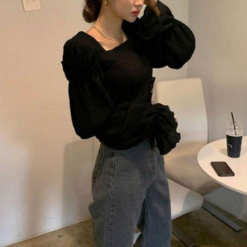[오노마] ONM 브이넥 퍼프 셔링 블라우스 팔뚝살 커버 데이트룩
