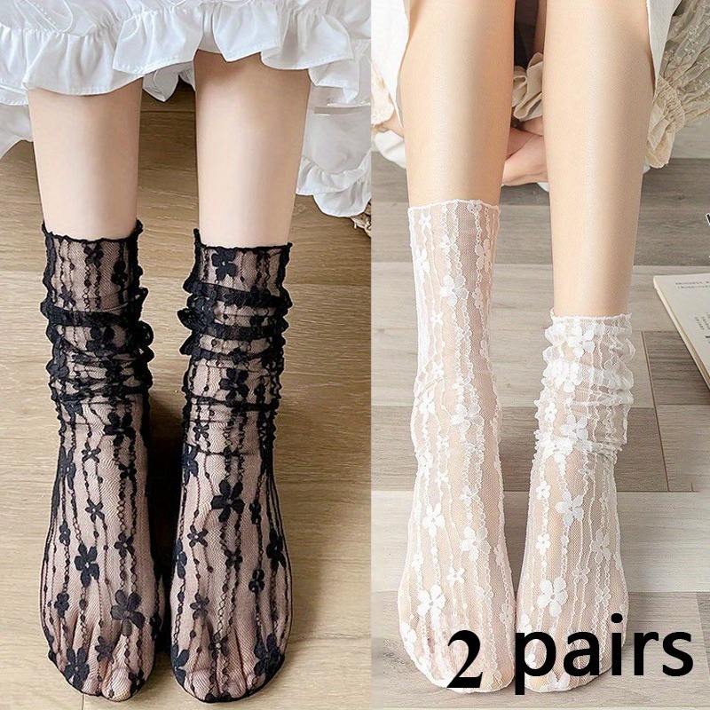 TEMU 플로럴 프린트가 있는 십대용 미드-카프 양말 중 2켤레 또는 4켤레를 선택하세요. 통기성 좋은 메시 여름 양말은 레이스와 얇은 플로럴 디자인이 다양한 색상으로 제공되며, 캐주얼 및 포멀 웨어 모두에 적합합니다. 이들은 신기한 양말입니다.