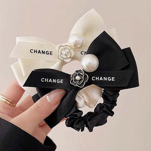 비아워게스트 짱짱한 고무줄 왕진주 곱창밴드 장미 머리끈 2p