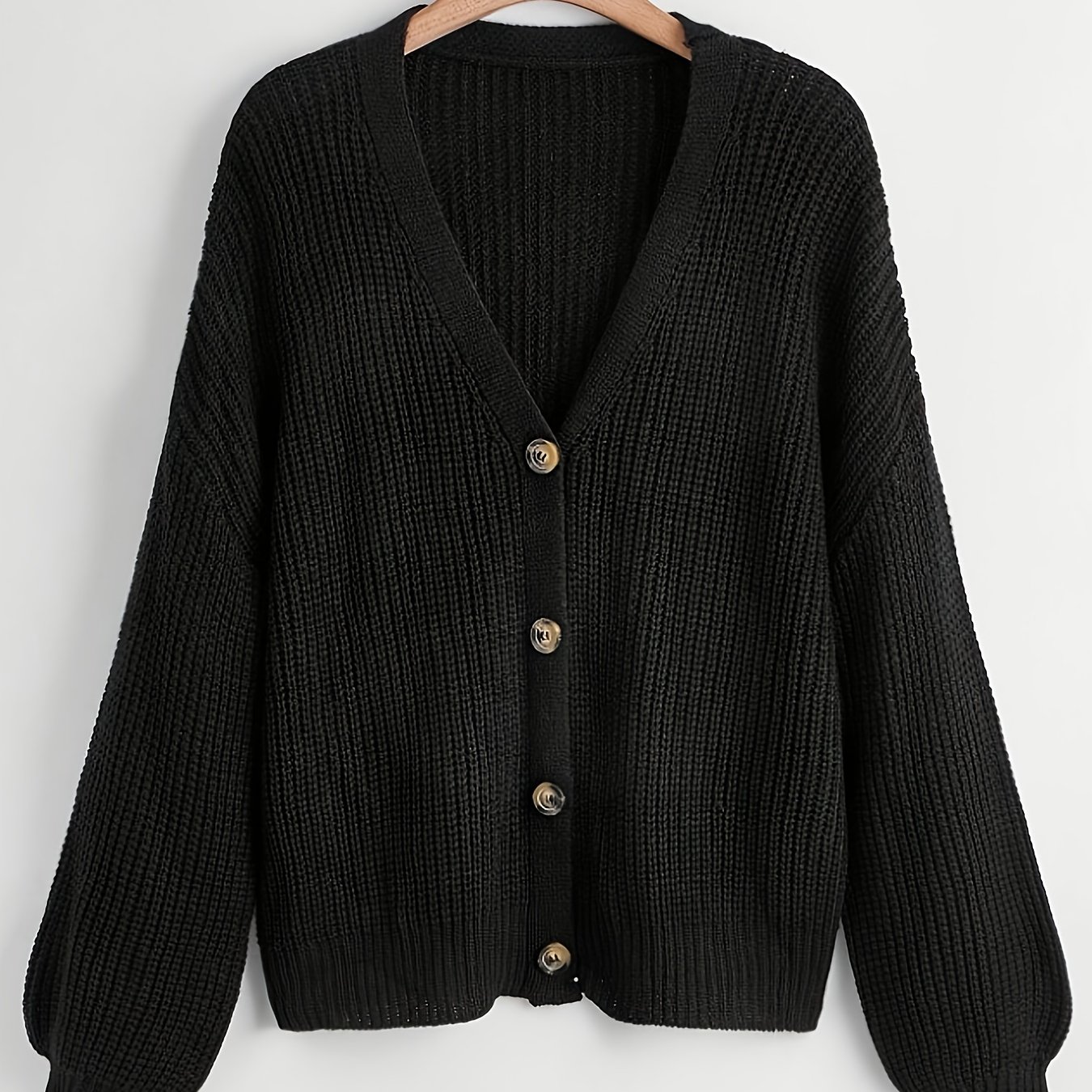 TEMU 여성용 플러스 사이즈 캐주얼 솔리드 컬러 케이블 가디건 - 흑색 버튼 프론트 오픈 프론트 스웨터, 가슴 포켓 포함, 기계 세탁 가능한 아늑한 가을 겨울 니트웨어, 중간 신축성 원단