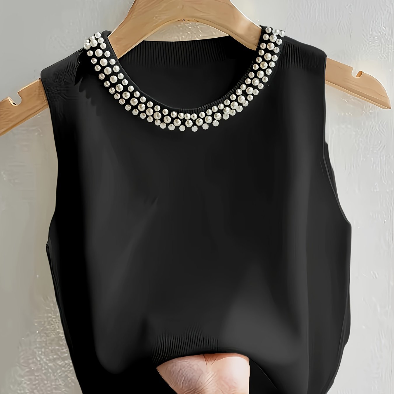 TEMU 플러스 사이즈 - 여성용 우아한 비즈 슬리브리스 탑, 스트레치 블라우스, 플러스 사이즈 친화적, 시크한 데일리 & 포멀 아웃핏 - 통기성 여름 셔츠, 라운드 넥라인, 편안한 핏, 스타일리시 블라우스, 패션 애호가를 위한 다용도 의류