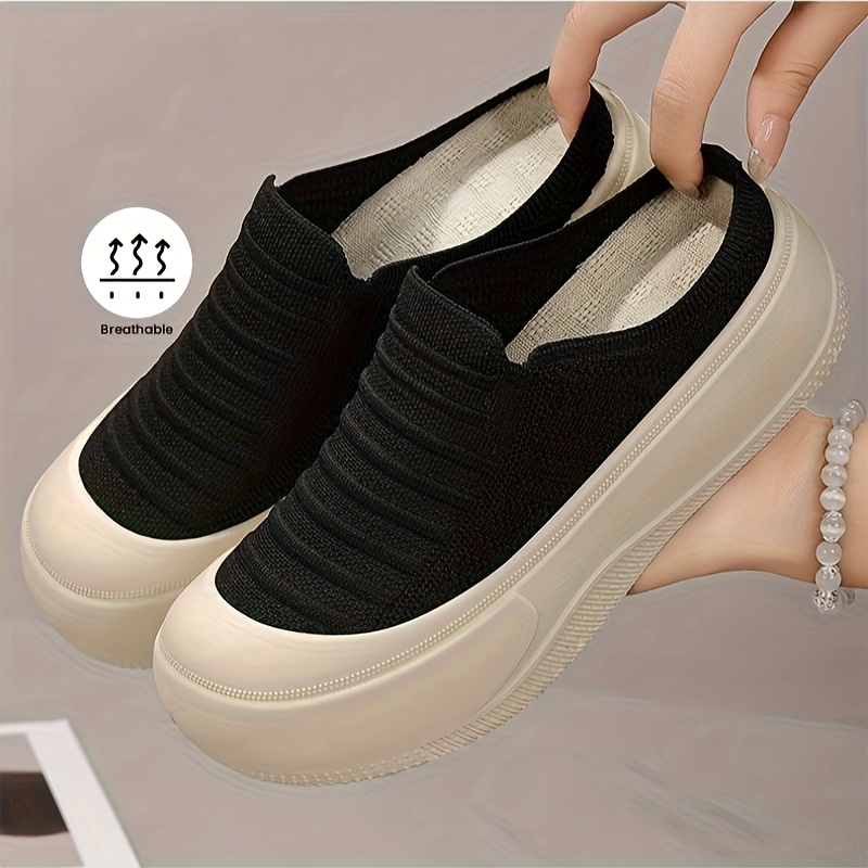 TEMU 여성 패션 스니커 1 쌍 - 캐주얼 슬립온 라운드 토 브리태블 패브릭 신발, 모든 계절을 위한 PVC 밑창