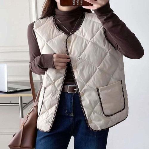 [셀럽하우스]여성 ZSAX7506 간편코디 경량 V넥 테두리패턴 누빔 패딩조끼