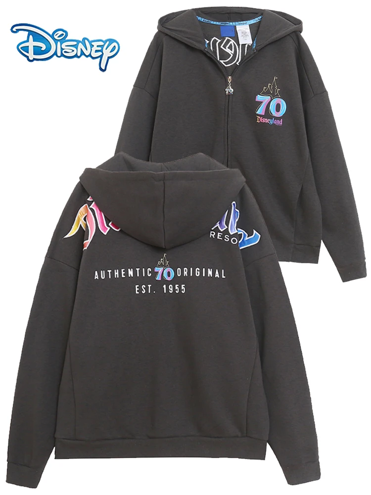 디즈니랜드 70주년 기념 성 미키 마우스 만화 프린트 자수 플리스 스웨트셔츠 여성용 후드 지퍼 벨루어 점퍼 탑