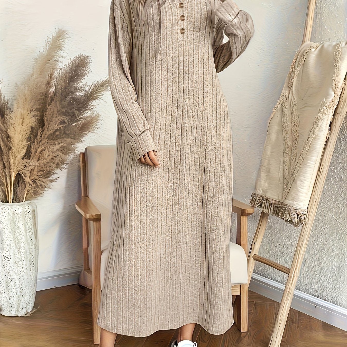 TEMU 끈이 달린 버튼 앞 리브 드레스, 우아한 긴팔 후드 드레스 봄 & 가을, 여성 의류