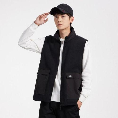 [에이치플러스몰]남성 겨울 간절기 투톤 하이넥 집업 후리스조끼 베스트 아웃도어 낚시조끼 집업후리스조..