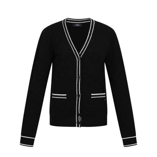 [팬텀][팬텀골프] 여성 크링클 자가드 V넥 니트 가디건 221E3SD106_BK