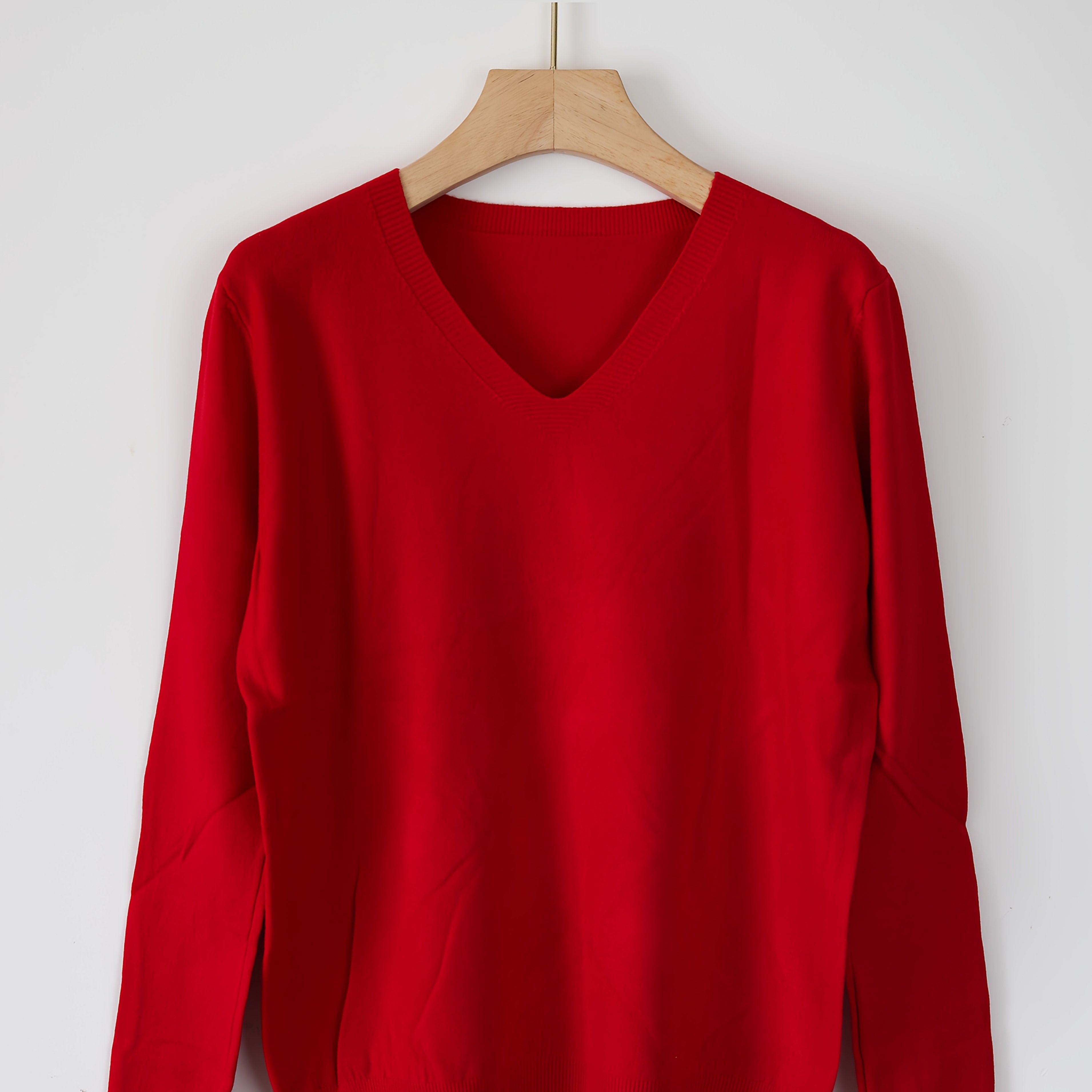 TEMU 여성 패션 솔리드 컬러 V넥 긴팔 풀오버 스웨터