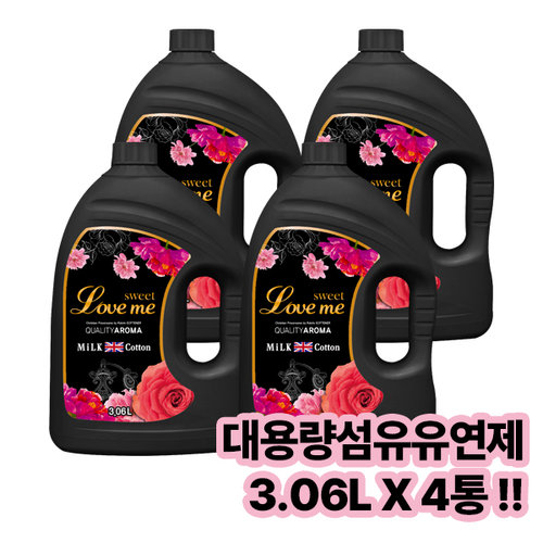 [10%할인+10%적립] 밀크코튼 고농축 대용량 섬유유연제 러브미 3.06L 4개