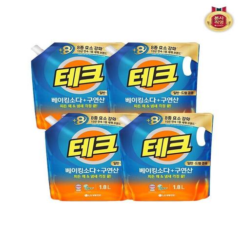 [테크]테크 베이킹소다+구연산 액체세제 일반 드럼 겸용 리필 1.8L x 4개
