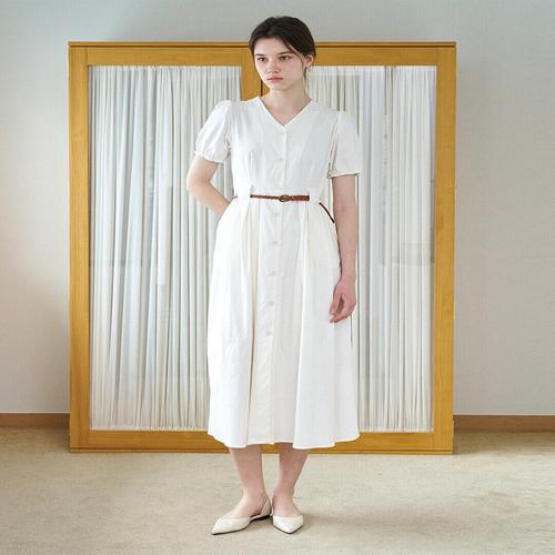 [위시드]퍼프 벨티드 브이넥 롱 원피스 (WIDBOP003)