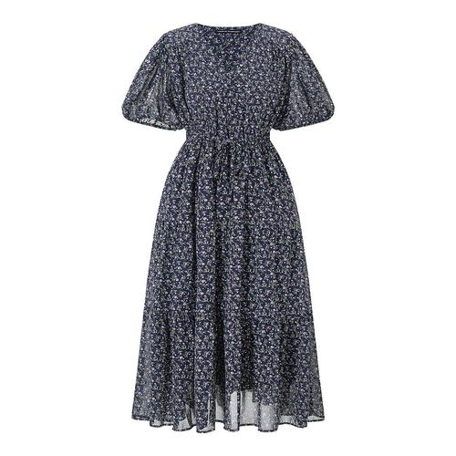 [미니멈에브리데이][미니멈 에브리데이]잔꽃 퍼프 소매 티어드 반팔 롱 원피스 (EC2OW012D)
