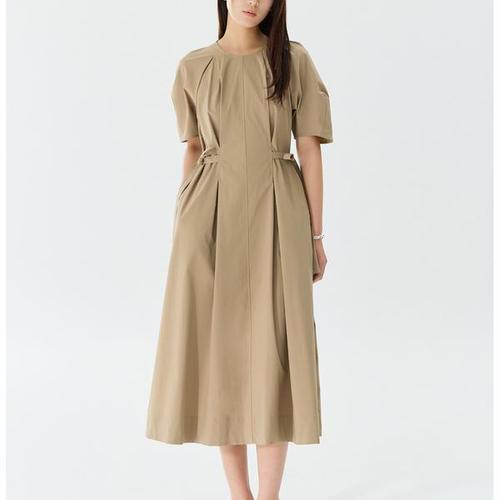[신상오픈런]옆주름 플레어 톤다운 퍼프반팔 스판원피스