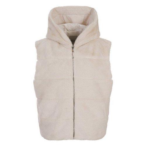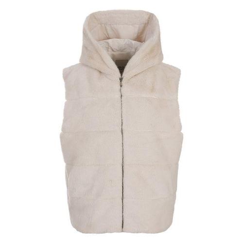 여자 겨울 소프트 페이크퍼 후드 집업 조끼