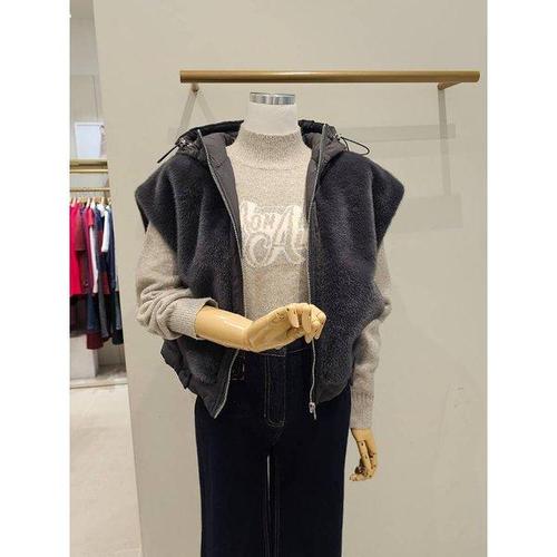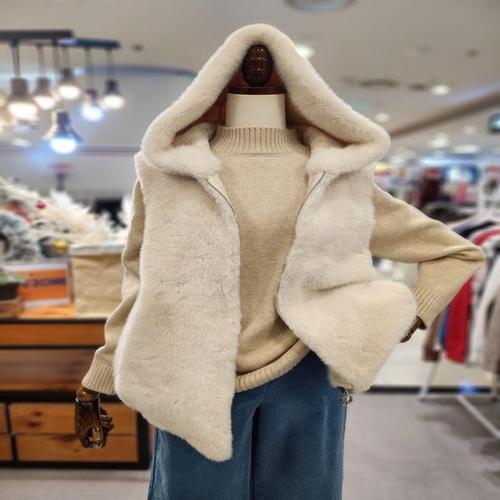 [행복여] 허밍 루즈핏 밍크 퍼 후드 조끼