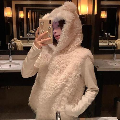 [신상오픈런]|CDJ6A0C|여성용 후드 스트링 퍼 베스트 캐주얼 뽀글이 디자인