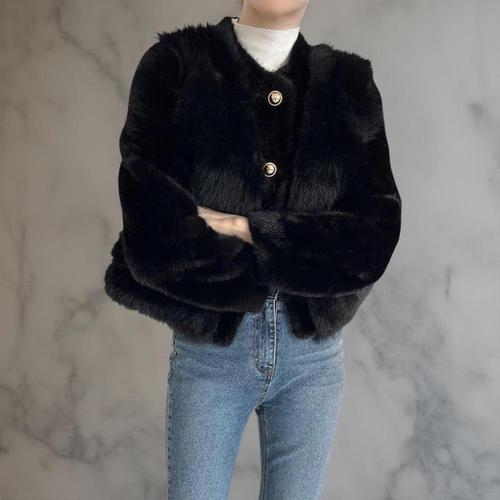 [다잇템]여성 단추 금색 트리밍 패션 연말 퍼 FUR 코트