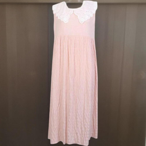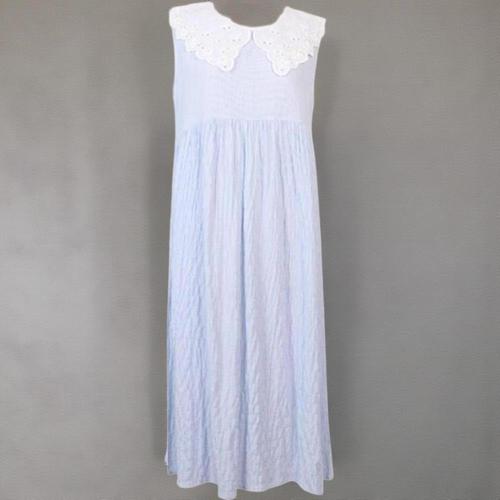 [신상오픈런]여성 민소매 롱 원피스 펀칭 레이스 카라넥 루즈핏 드레스