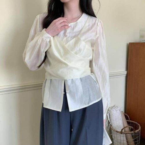 블라우스 클래식 타이블라우스 펀칭블라우스 크롭 (WFKIYZS)