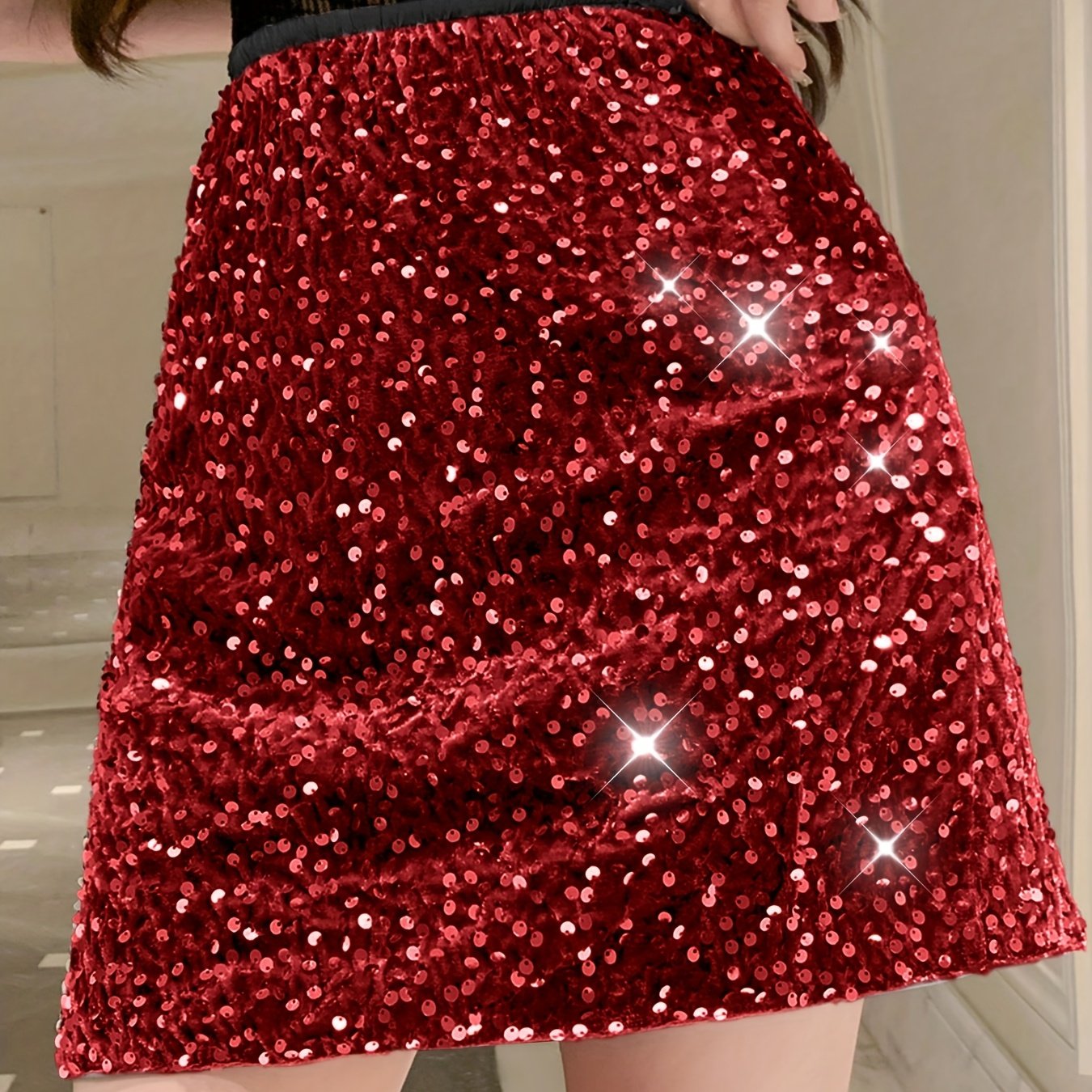 TEMU 여성용 시퀸 하이웨이스트 미니 스커트 슬림핏 다용도 쇼핑미디