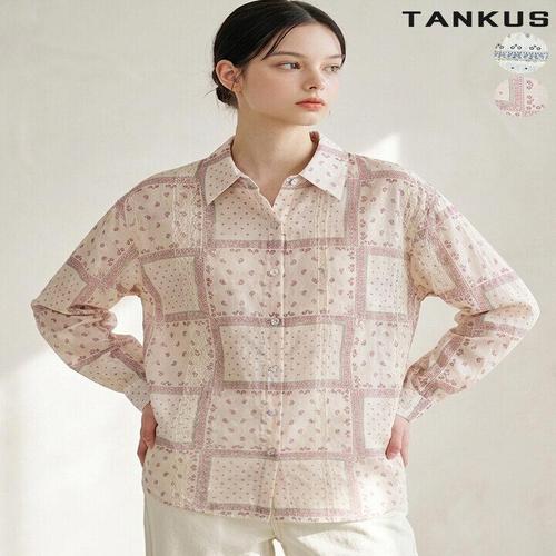 [탱커스]여성 시스루 페이즐리 패턴 루즈핏 셔츠