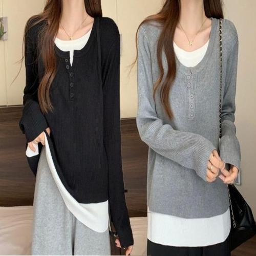 [엄지척]여성 페이크 이너티 레이어드 골지 긴팔 티셔츠_19610409_667501
