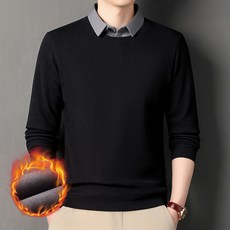 이븐클로젯 중년 남성 페이크 레이어드 카라 기모 니트