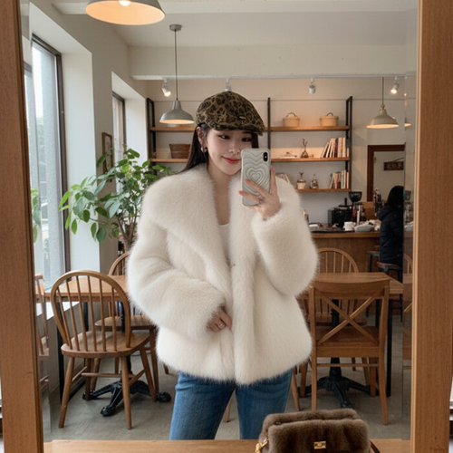 FANSYLI 가을 겨울 신상 모피 외투 패션 쇼트 스탠드카라 재킷 여성 고급 인조 모피 통근 외투 X2408A31