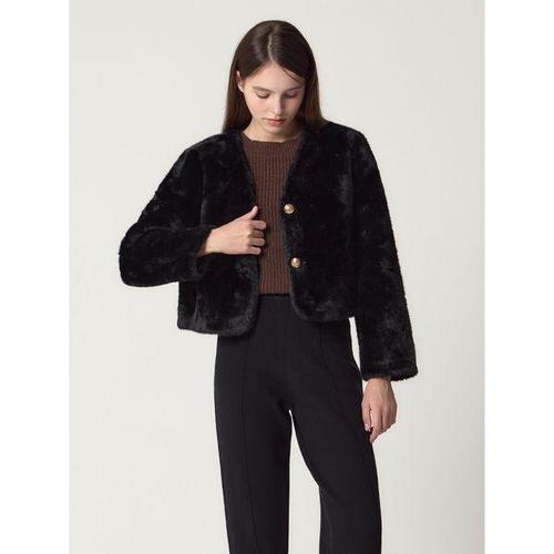 [신상오픈런]여성 퍼프 소프트 라운드 버튼 페이크퍼 자켓