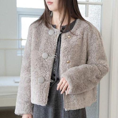 [제이0][제이0]인조 모피 양가죽 밍크 퍼 라운드 자켓 점퍼