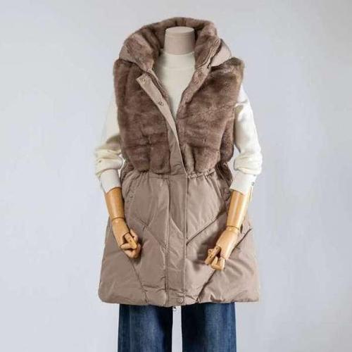 [애슬릿][애슬릿]여성 롱 패딩 조끼 페이크 인조 퍼 후드 겨울 퀼팅