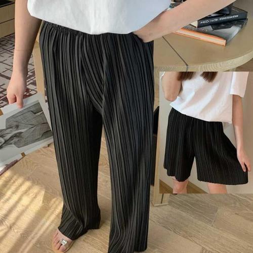 [끌레아]편한 통바지 고무줄 여자와 팬츠 주름 패턴한 시원 쿨링 9부 예쁜 컬러 와이드핏