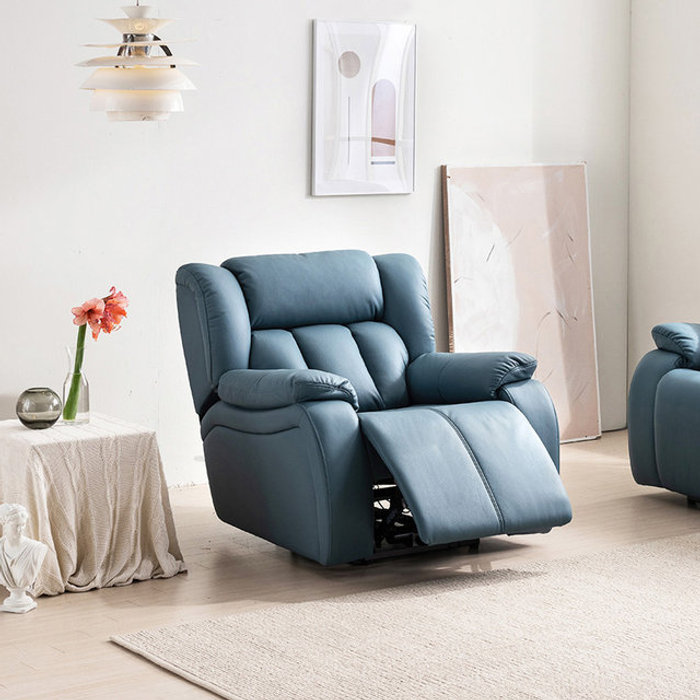 시트앤모어 시트앤모어 요하네스 천연통가죽 목편한 경추 전동 리클라이너 1인소파 KC4118