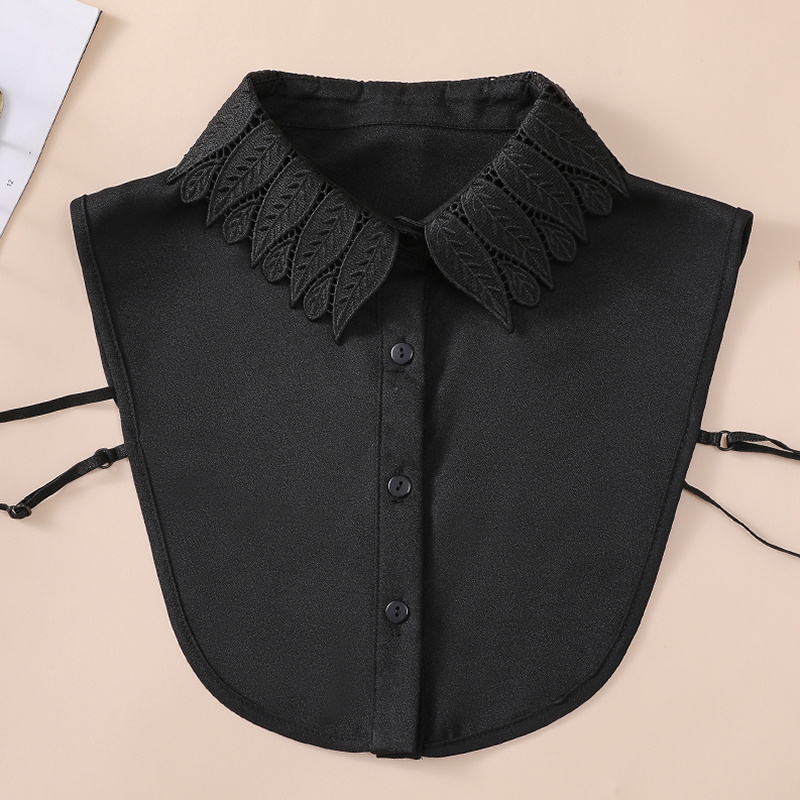 TEMU 블랙 쉬폰 칼라 레이스 리프 자수 정장 칼라 우아한 하프 셔츠 블라우스