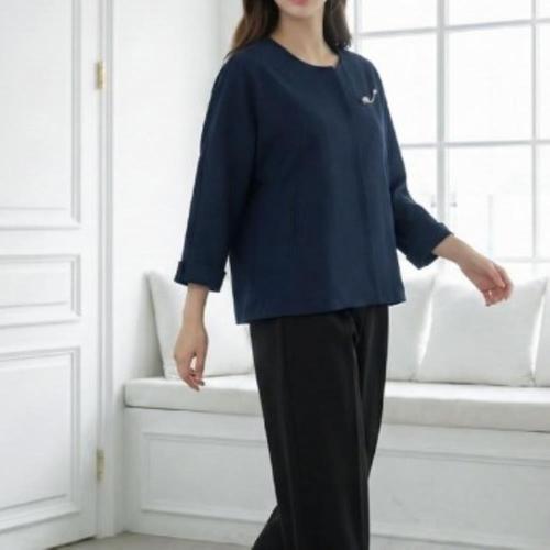 [다잇템]여성 재킷 쁘띠 카라없는 짧은 브로치포인트