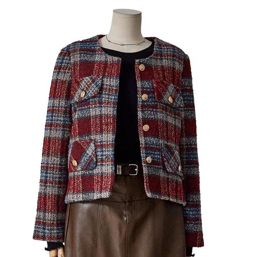 CLOREX 여성 트위드 자켓 버튼 캐주얼 트위드 자켓