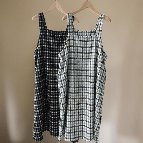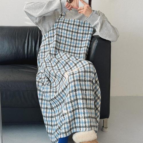 [미라클세븐]여성 빅사이즈 체크 멜빵 롱원피스 겨울 임산부용 포켓 디자인