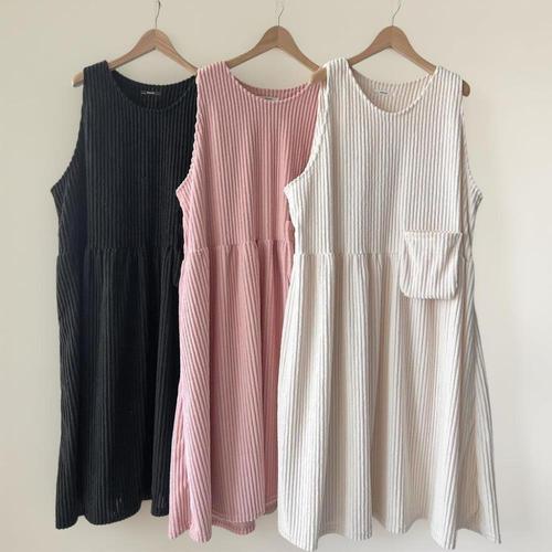 [미라클세븐]여성용 기모 롱원피스 빅사이즈 코듀로이 포켓 민소매 드레스