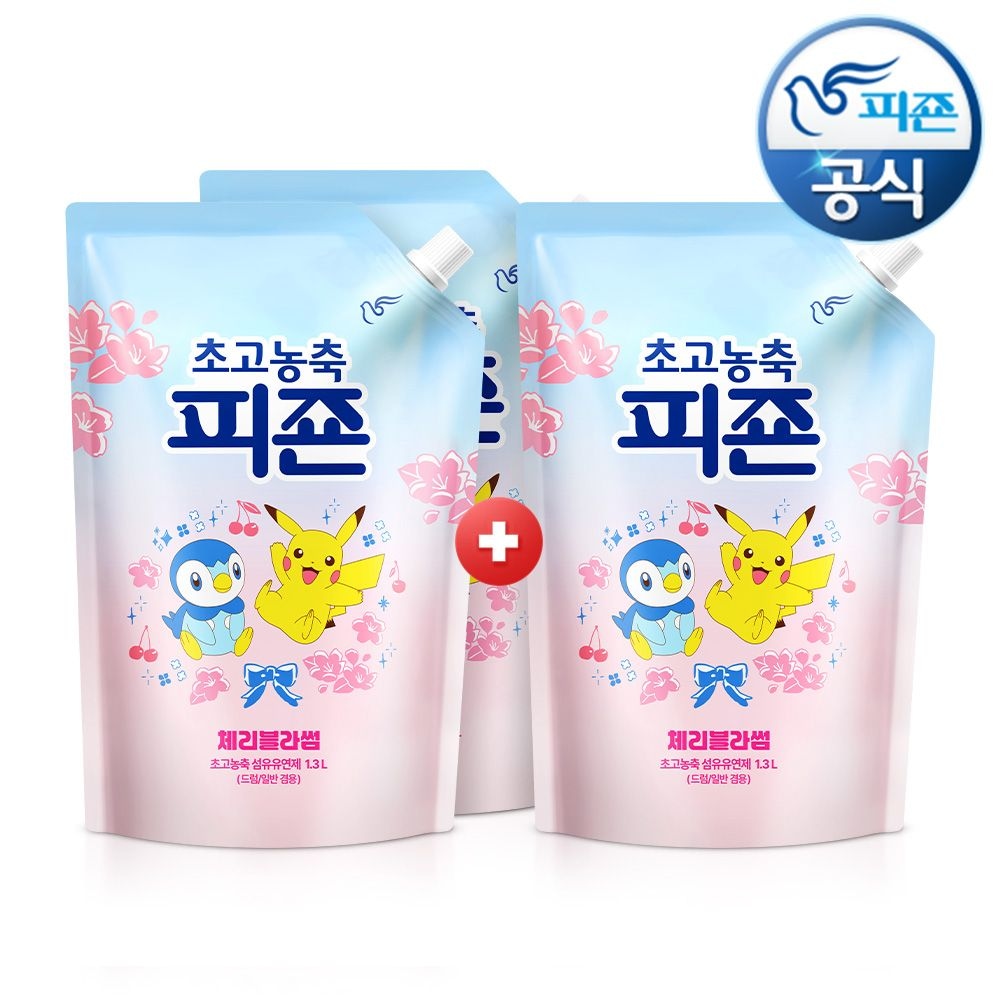 포켓몬 에디션 초고농축 섬유유연제 체리블라썸 1300mlx2개+1개더 P