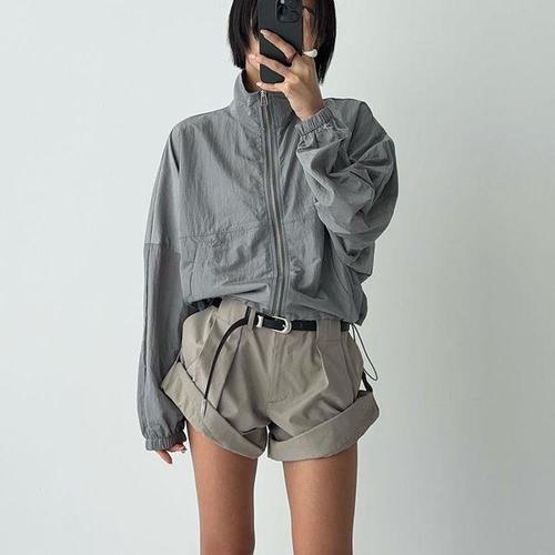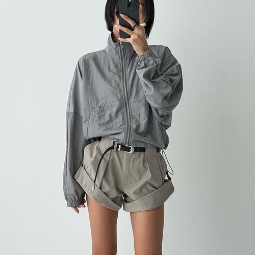 옷자락 / 여자 하이넥 스트링 포켓 바스락 가을 바람막이 점퍼