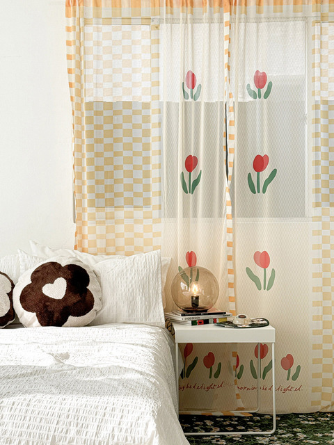 [러움] 모닝튤립 옐로우 쉬폰 커튼