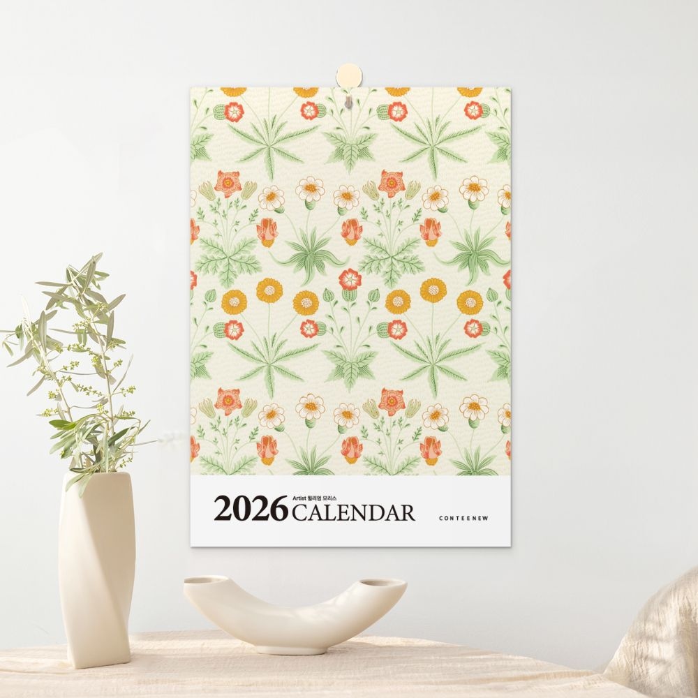 2026년 윌리엄 모리스 아트 벽걸이 캘린더 달력 타공형